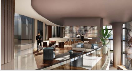 Culinary amenities include a dramatic three-story lobby bar and restaurant with 33-foot-high ceilings, in-residence dining, and a private dining room for hosting. A whiskey bar inspired by Bentley’s iconic grille design offers a sophisticated retreat. Entertainment options include a plush movie theater inspired by Bentley’s interiors, a cigar lounge with billiards and TV, and a game room featuring racing simulators and virtual reality. Families can enjoy a dedicated Kids’ Club programmed with engaging activities.