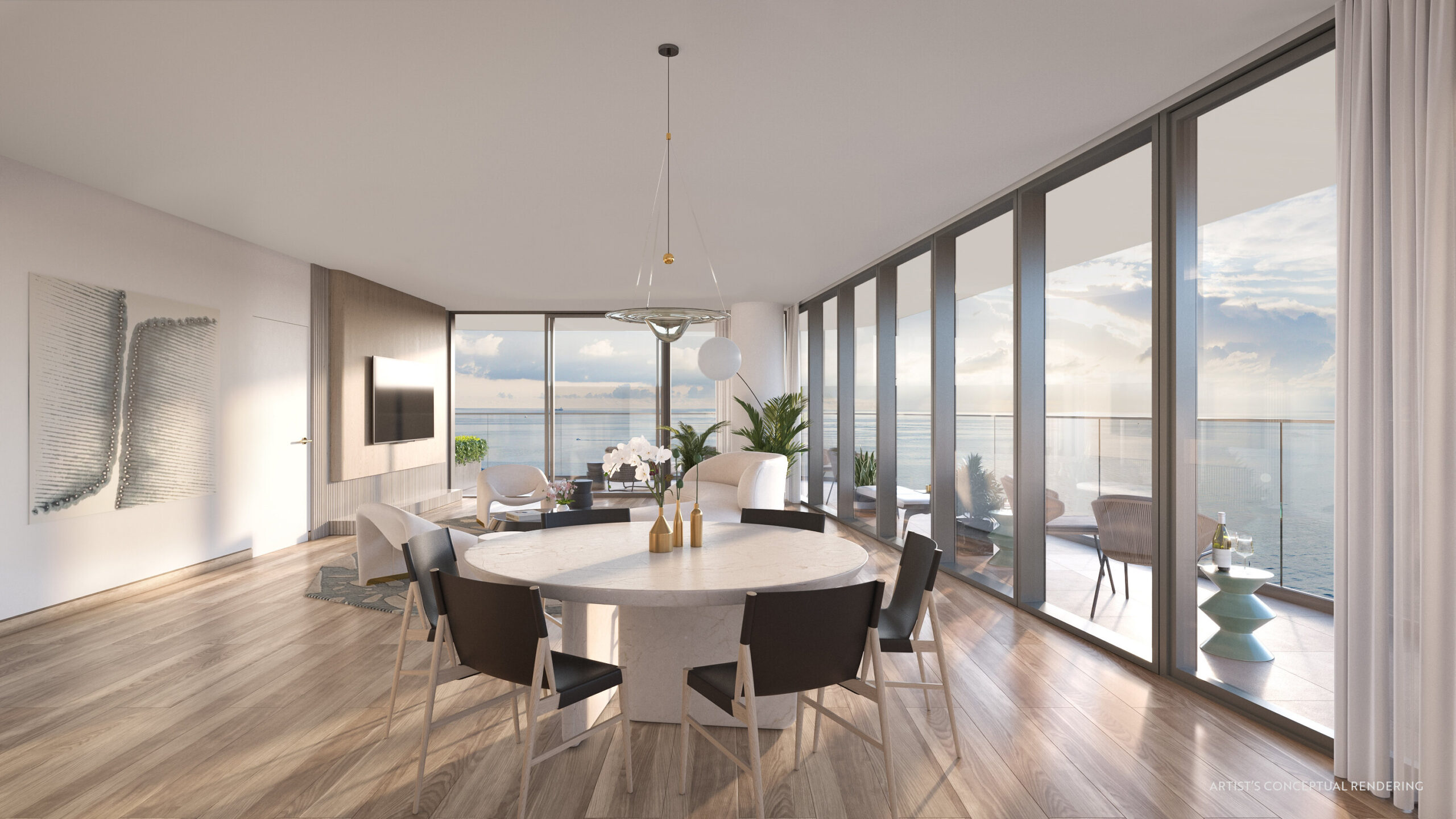 Residences at Casamar Pompano Beach range from two to four bedrooms, each featuring floor-to-ceiling glass windows and expansive terraces. These homes are designed for seamless indoor-outdoor living and offer panoramic views of the Atlantic Ocean and Intracoastal Waterway.