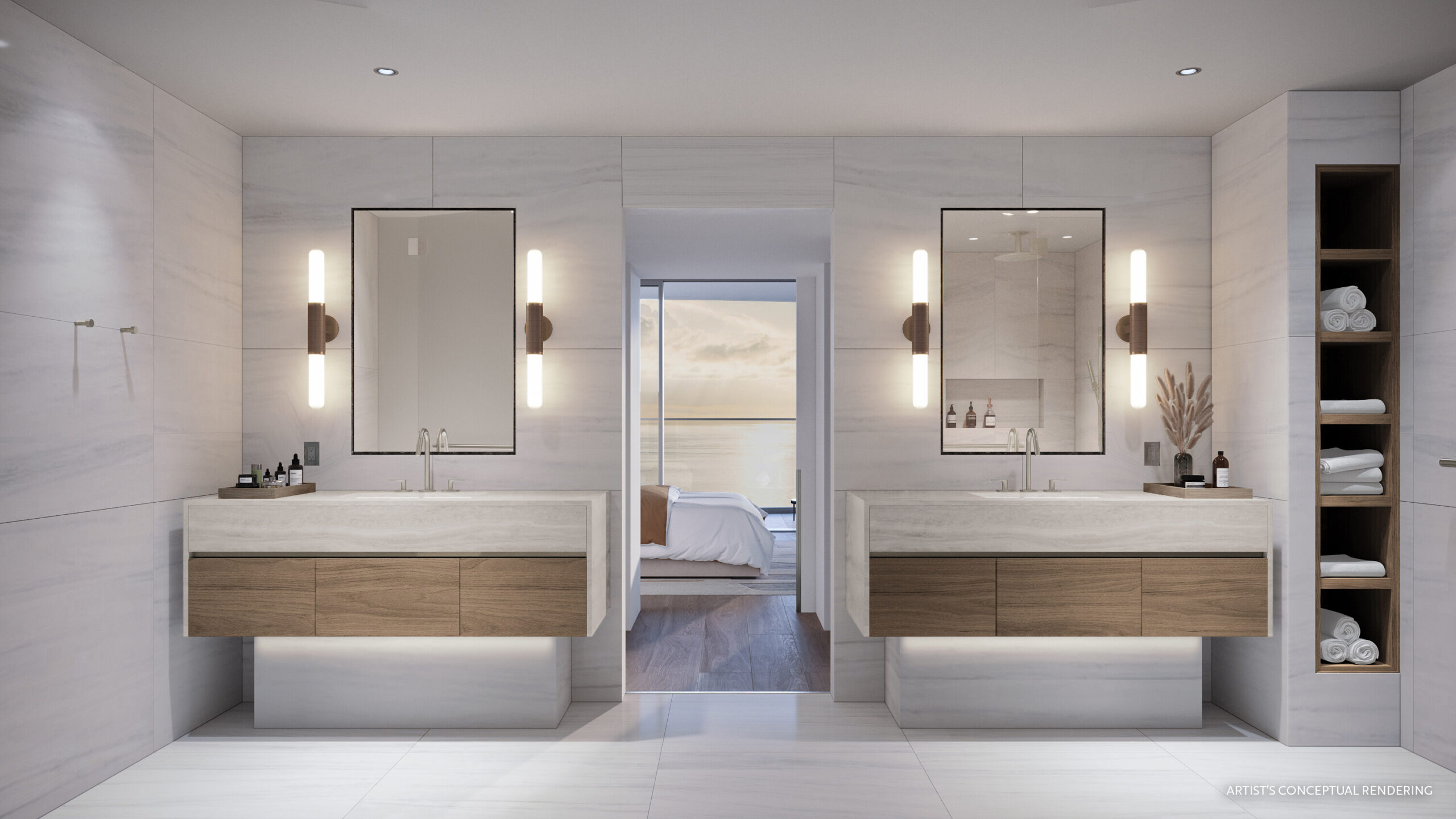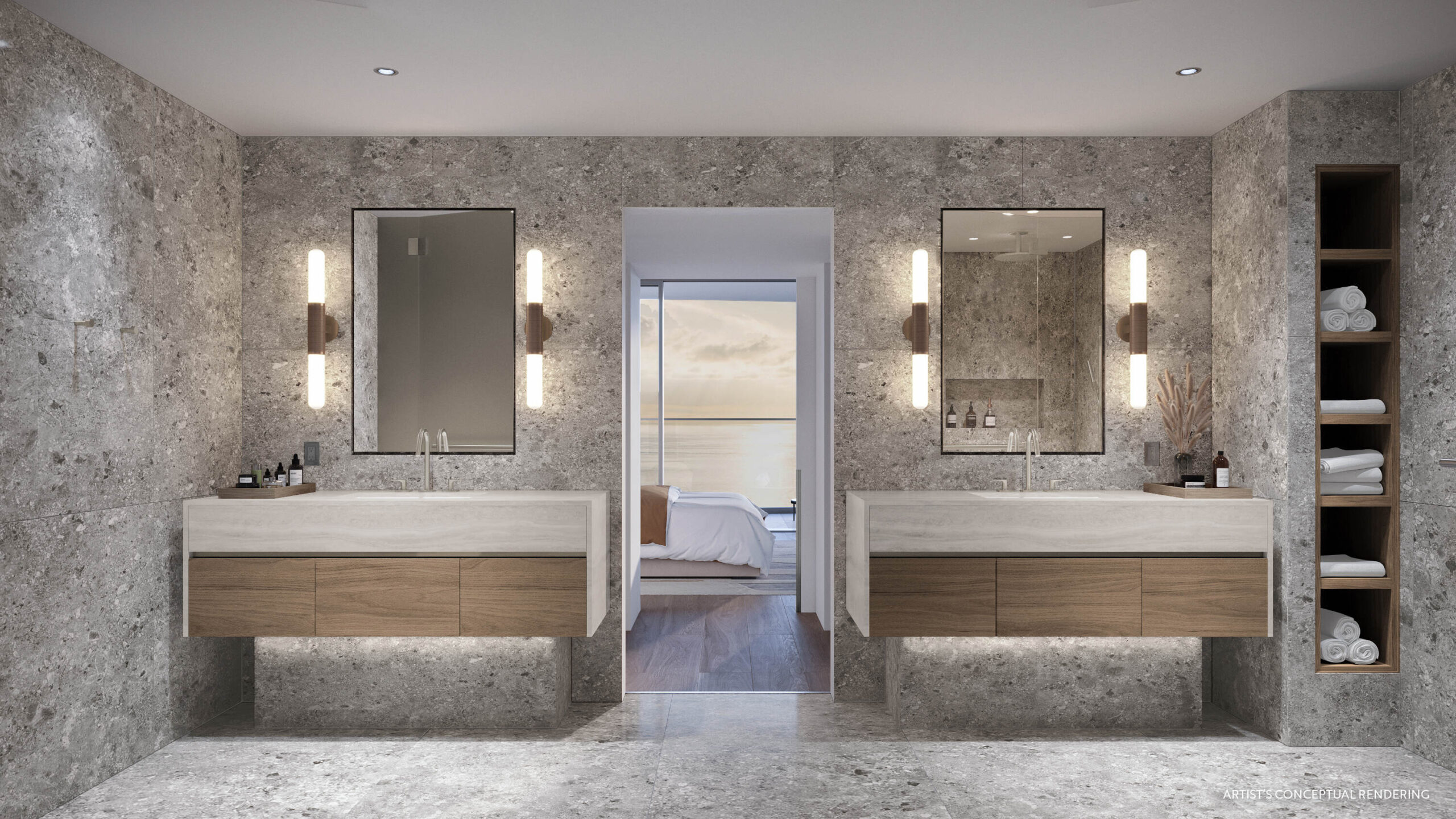 In addition, interiors have been curated by The IDDI Design Team to reflect the soft, soothing tones of the sea. Spacious floorplans, spa-like bathrooms, and chef-inspired kitchens provide both function and elegance. Public spaces, created by the award-winning Rockwell Group, echo the serenity of the ocean.