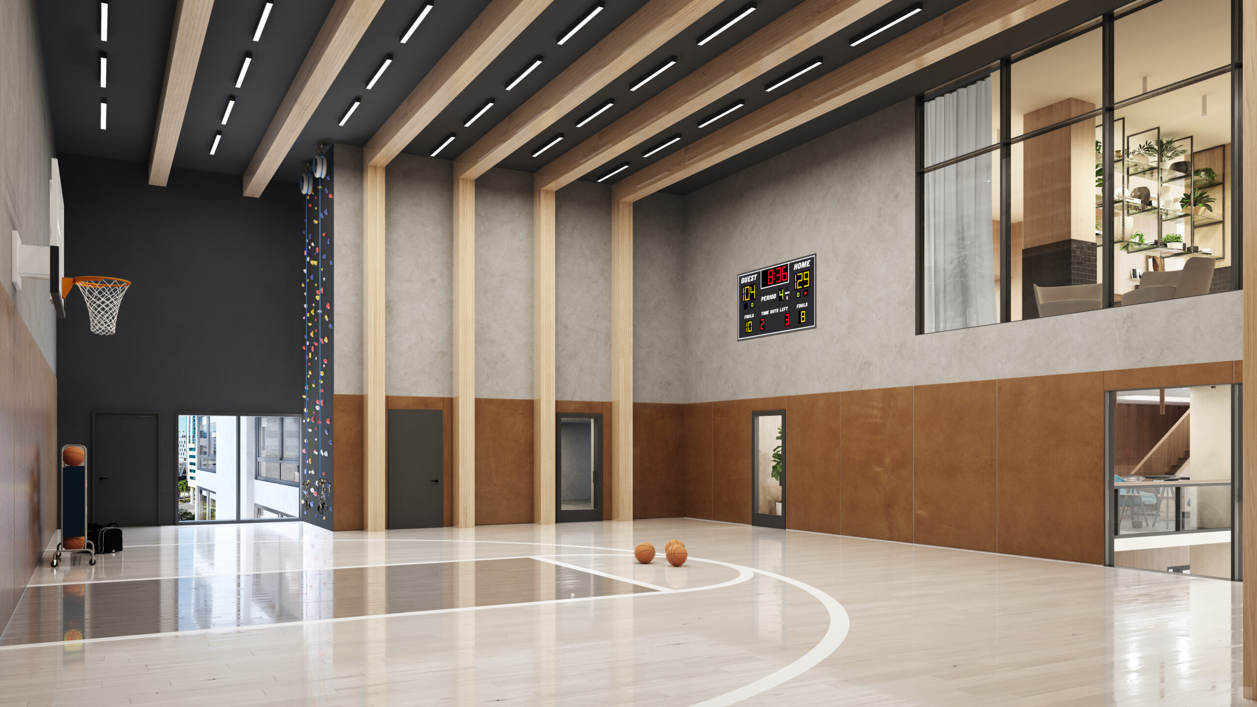 - Basketball & Racquetball Courts and rock climbing wall