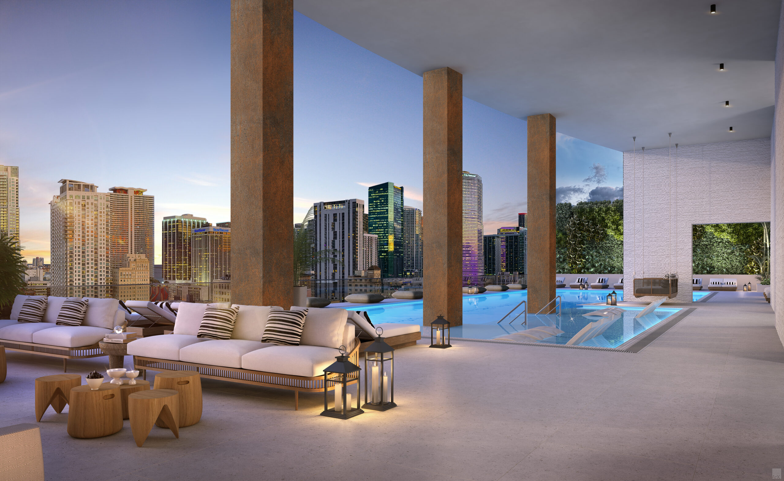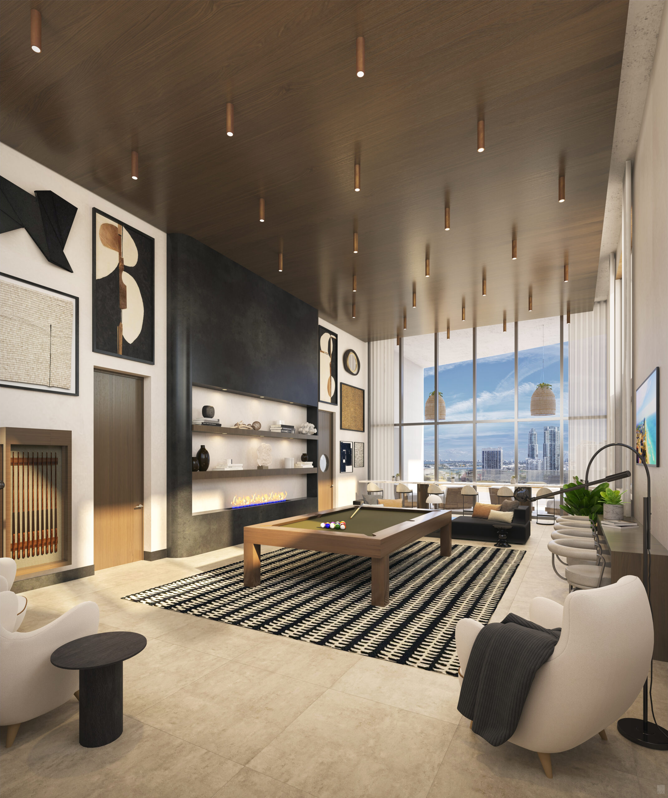 - Double-height lobby with 24/7 security and valet services