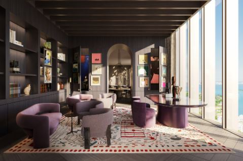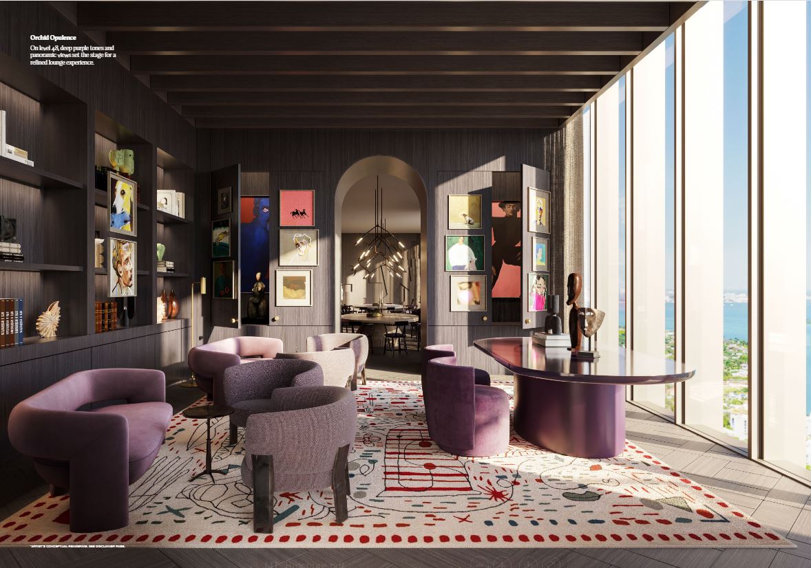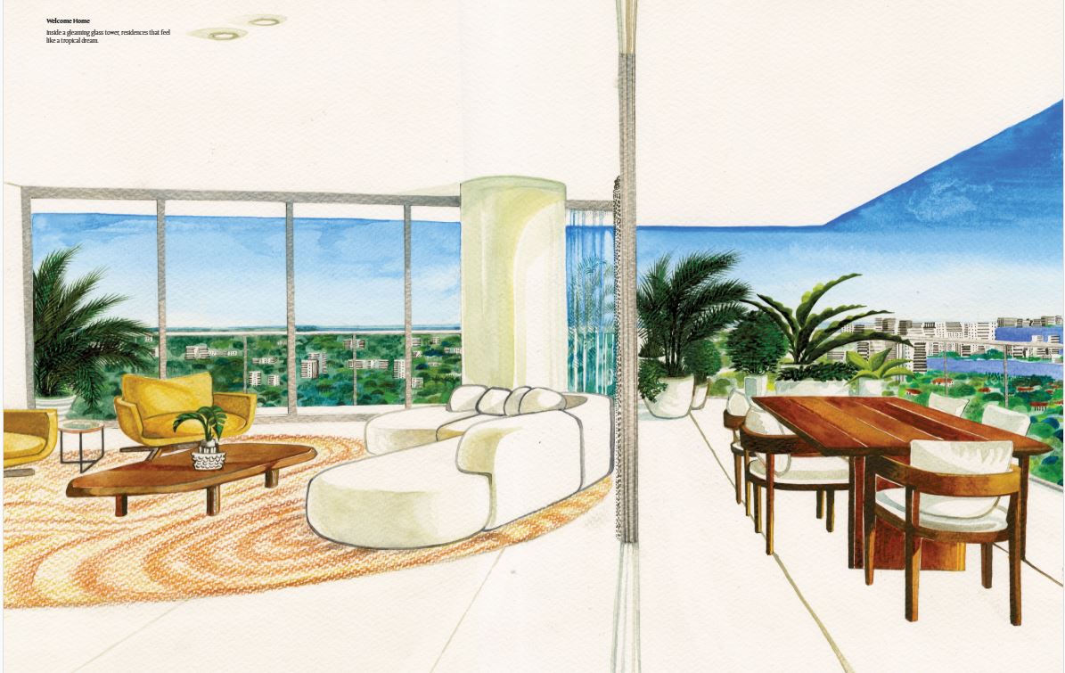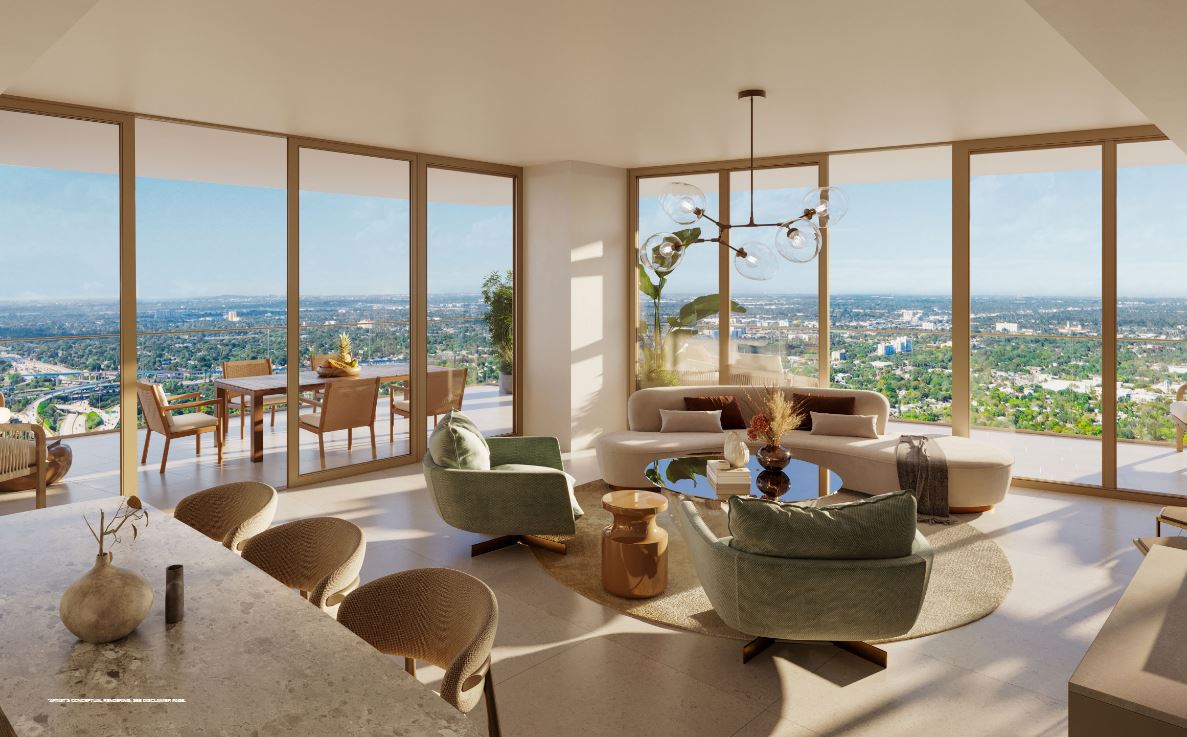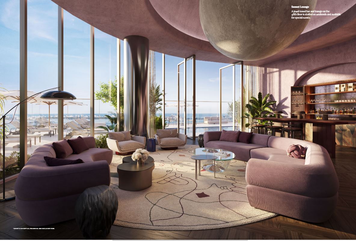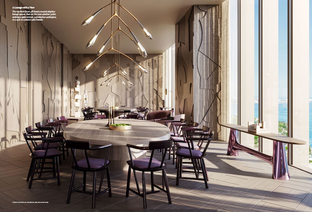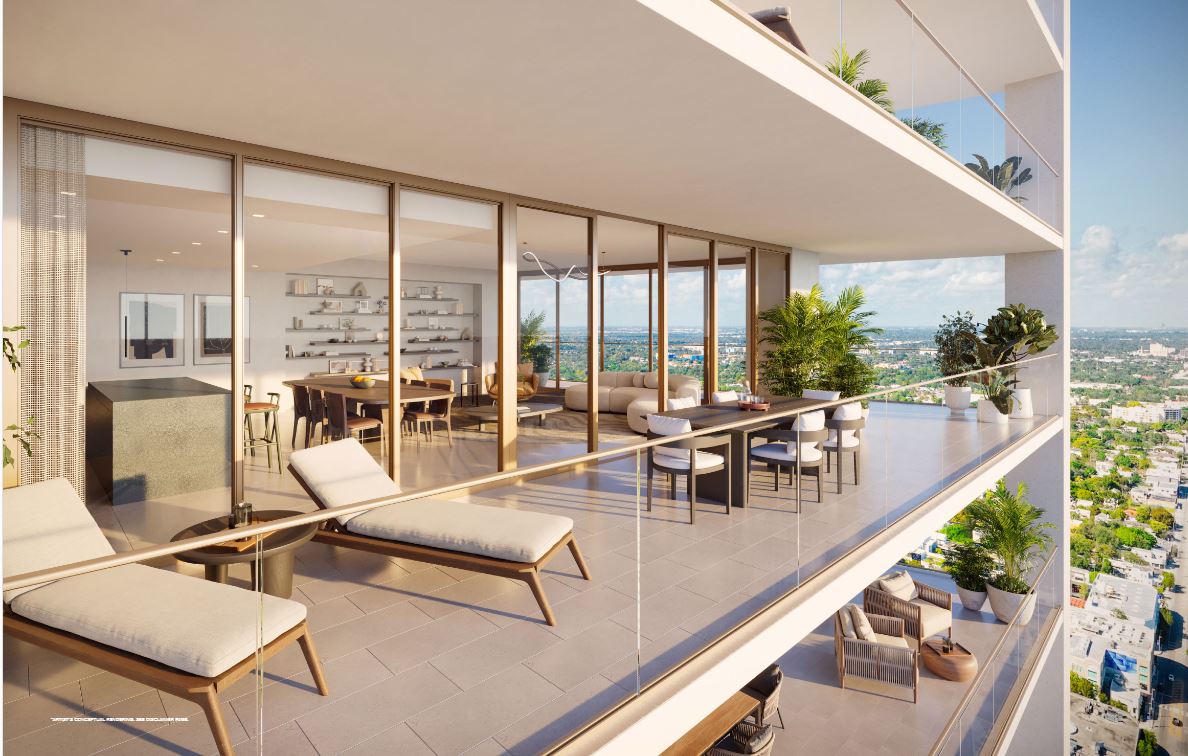 Inside the tower, residences will range from one to four bedrooms. Each unit will feature floor-to-ceiling windows, private terraces, and light-filled interiors. The layouts are open and modern, blending clean lines with warm, tropical materials. From every room, sweeping views of Biscayne Bay or the downtown skyline create an inspiring backdrop.