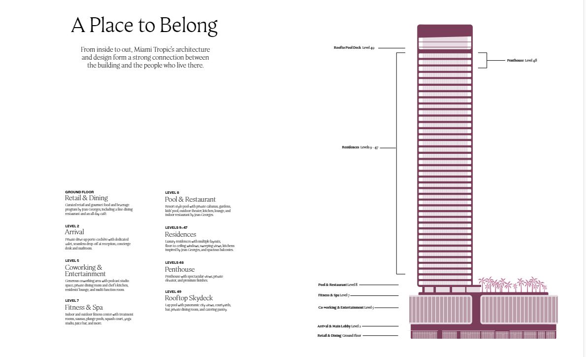 Jean Georges Miami Tropic Residences Miami will be a striking 48-story tower rising in the heart of the city’s Design District. This visionary project, backed by renowned chef Jean-Georges Vongerichten, brings an elevated lifestyle to one of Miami’s most desirable neighborhoods. Designed to reflect the energy and beauty of South Florida, the development offers a luxurious retreat with skyline and ocean views.