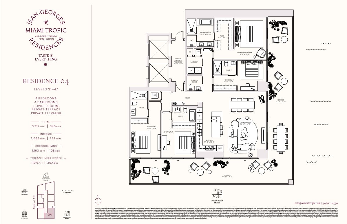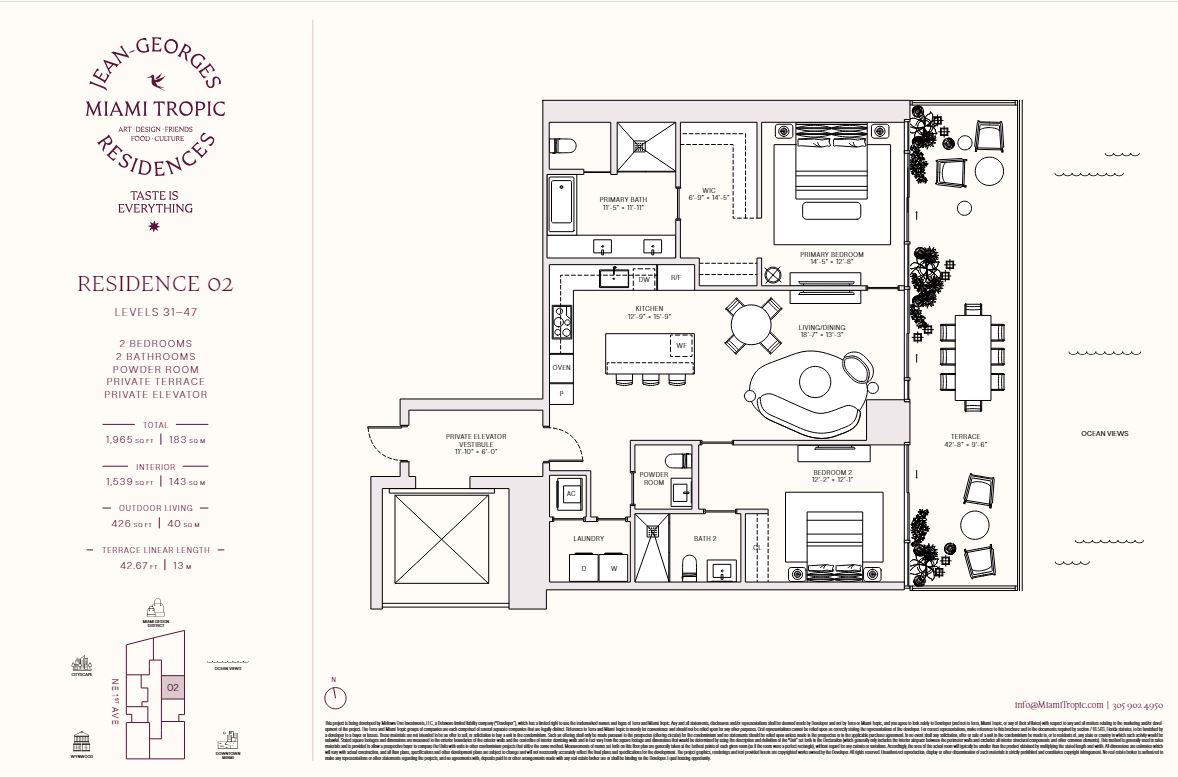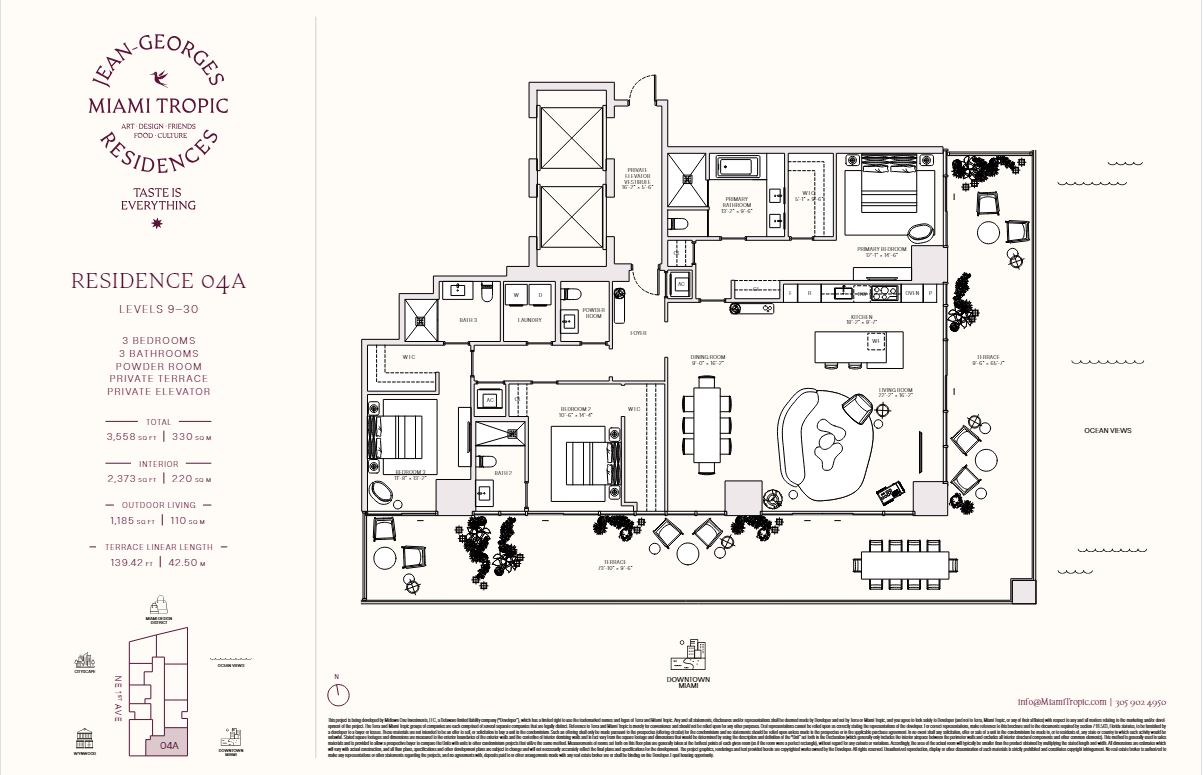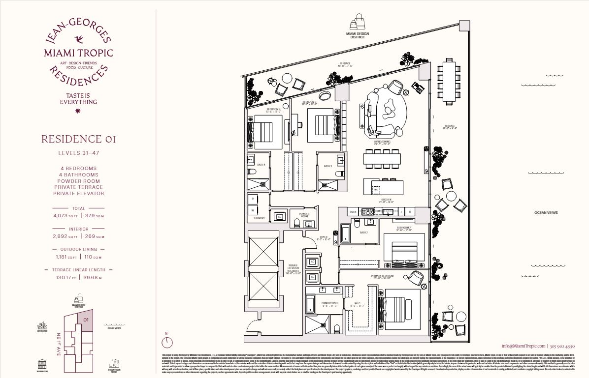 Jean Georges Miami Tropic Residences Miami will be a striking 48-story tower rising in the heart of the city’s Design District. This visionary project, backed by renowned chef Jean-Georges Vongerichten, brings an elevated lifestyle to one of Miami’s most desirable neighborhoods. Designed to reflect the energy and beauty of South Florida, the development offers a luxurious retreat with skyline and ocean views.