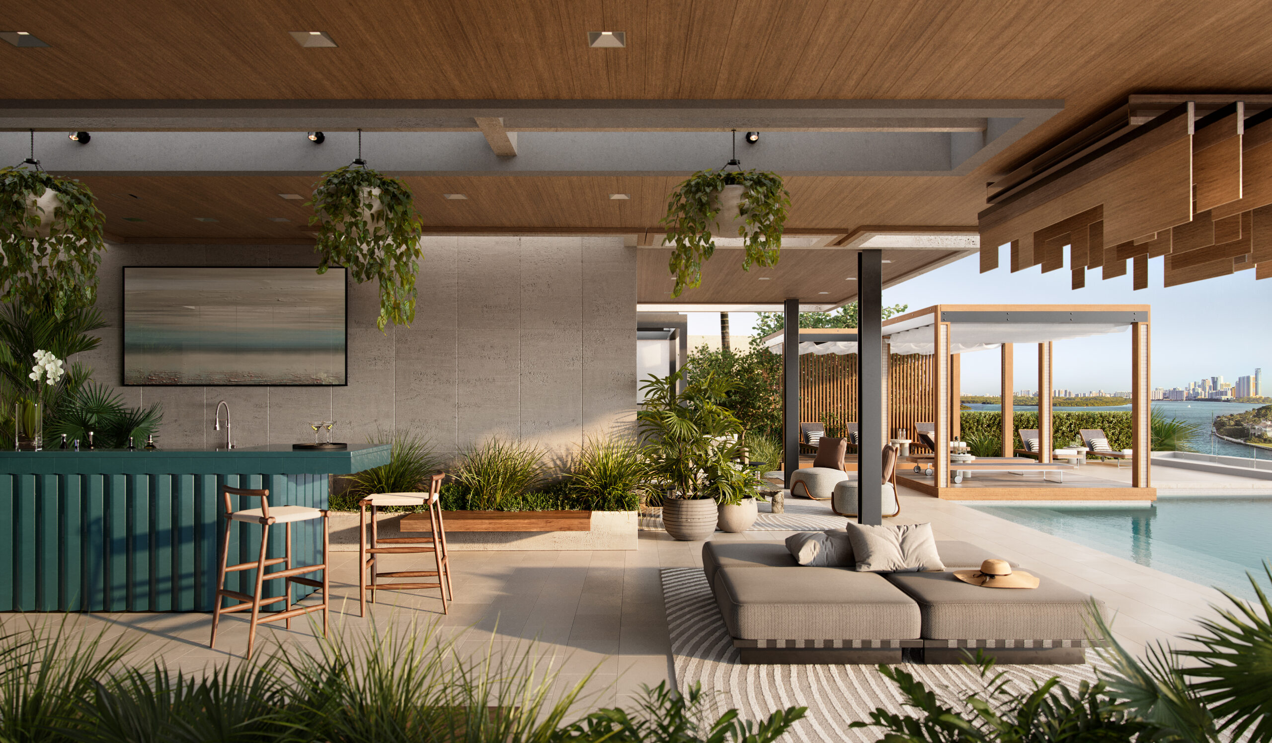These luxury condos in Bay Harbor include expansive floorplans, floor-to-ceiling windows, and private terraces. Each unit provides sweeping views of Biscayne Bay and the Miami skyline. The interiors showcase refined finishes, premium materials, and an open layout that flows seamlessly from indoors to outdoors. Every detail supports elegant design, privacy, and comfortable living.