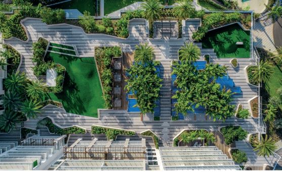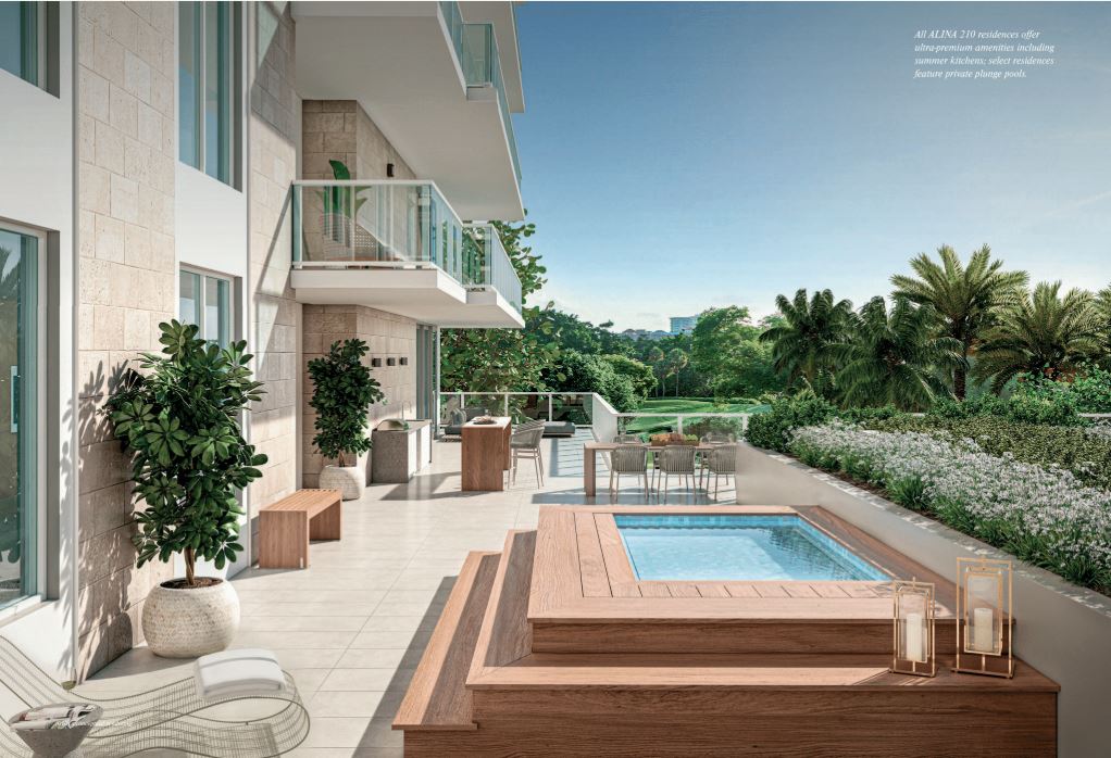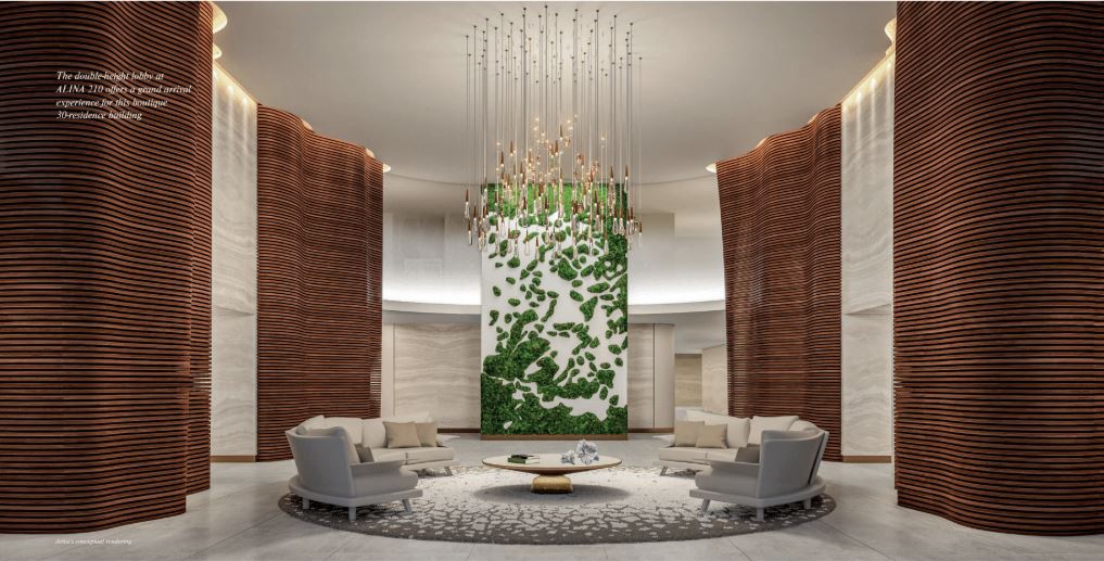 In addition, ALINA 210 offers its own amenities. Residents enjoy a private pool, a state-of-the-art fitness room, and a dedicated spa area. All this is separate from the larger community, ensuring a quiet, intimate lifestyle.
