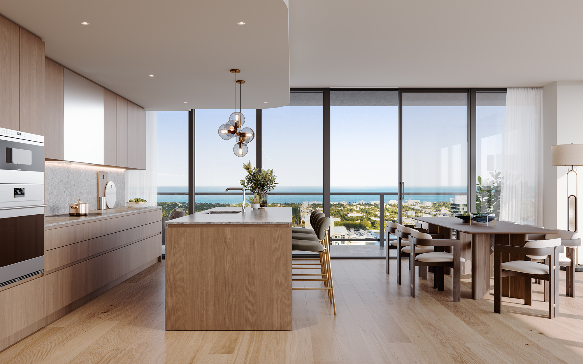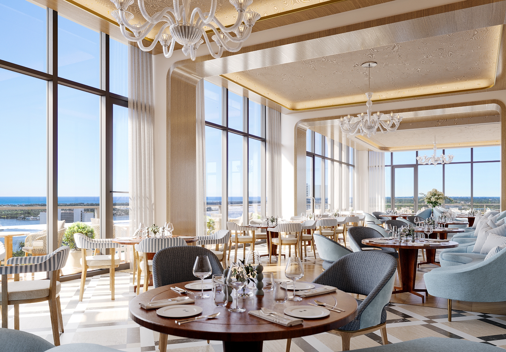The tower features 146 private residences and 110 hotel suites, each meticulously designed to maximize comfort and style. In addition, interiors are curated with European-style kitchens, high-end appliances, and elegant finishes that reflect understated luxury. Spa-inspired bathrooms, expansive terraces, and private elevator entry in select residences further enhance the lifestyle experience. Every detail reflects the Cipriani family’s legacy of hospitality and commitment to curated living.