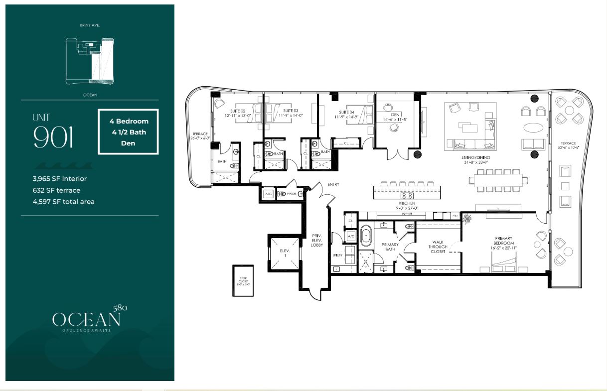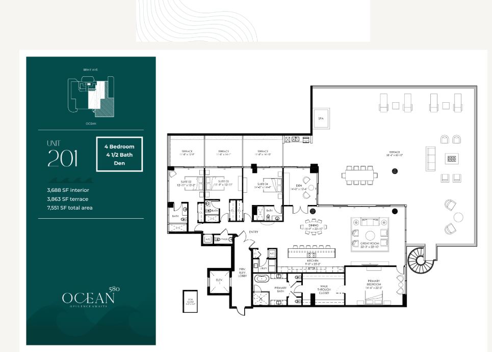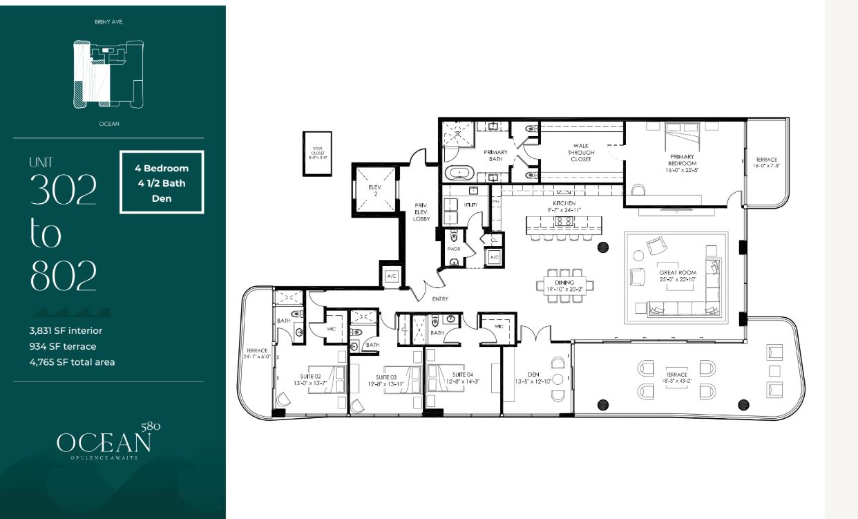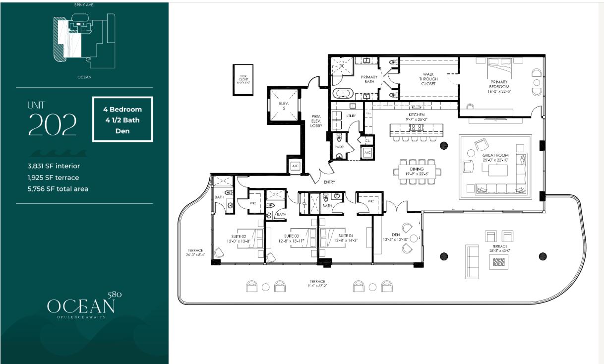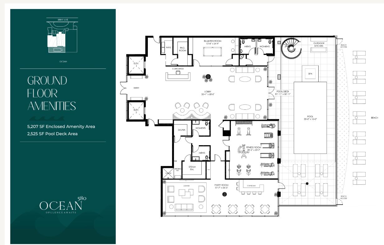 Inside each residence, thoughtful design meets high-end craftsmanship. Spacious open floor plans, floor-to-ceiling windows, and expansive terraces maximize light, views, and the indoor-outdoor lifestyle. In addition, gourmet kitchens are equipped with premium appliances, European cabinetry, and waterfall-edge countertops, while spa-inspired bathrooms feature designer fixtures and natural stone finishes. Smart home technology and private elevator access further elevate the everyday living experience. As a result, Ocean 580 delivers a level of comfort and exclusivity unmatched in the area—making it ideal for both full-time residents and seasonal homeowners seeking a coastal retreat.