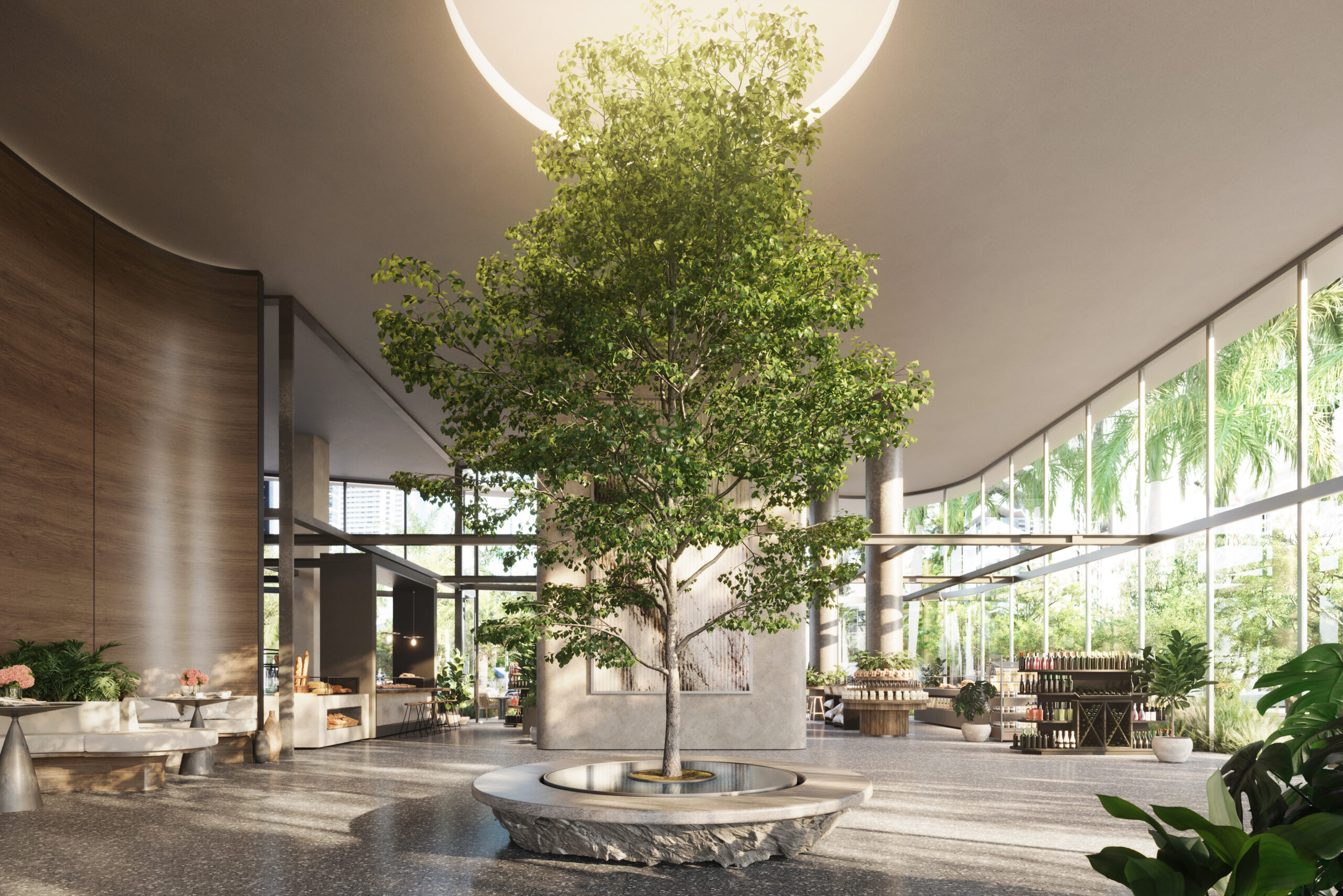 Beyond the residences, Ora offers an unmatched amenity package centered around wellness, community, and lifestyle. Four signature dining concepts—anchored by Casa Tua’s globally inspired cuisine—provide elevated culinary experiences without leaving home. Residents can also enjoy a full-floor wellness and fitness center, social lounge, coworking areas, and a rooftop infinity pool. Most notably, the 40-foot-tall “Bosco” Sky Park offers shaded pathways, meditation gardens, and lush greenery—a peaceful oasis suspended above the city.