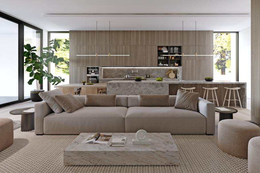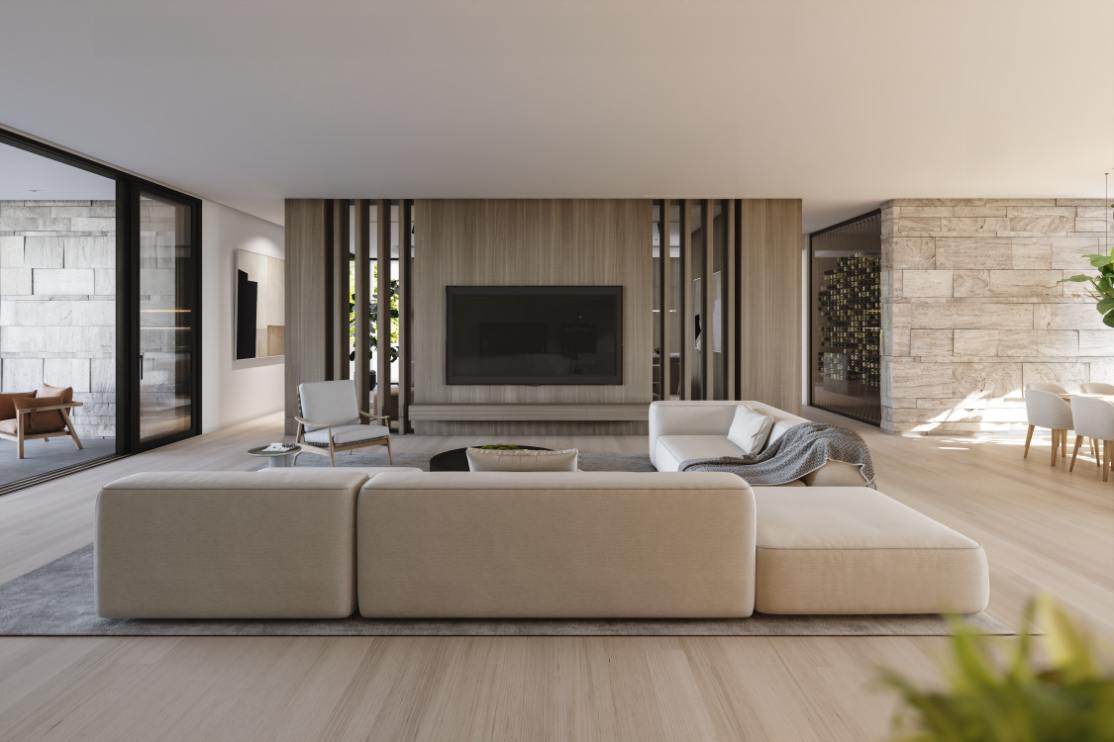 Each home is a custom-designed estate by award-winning architect Max Strang, known for his minimalist style and environmentally responsive approach. Homes feature expansive layouts, clean architectural lines, and premium finishes.