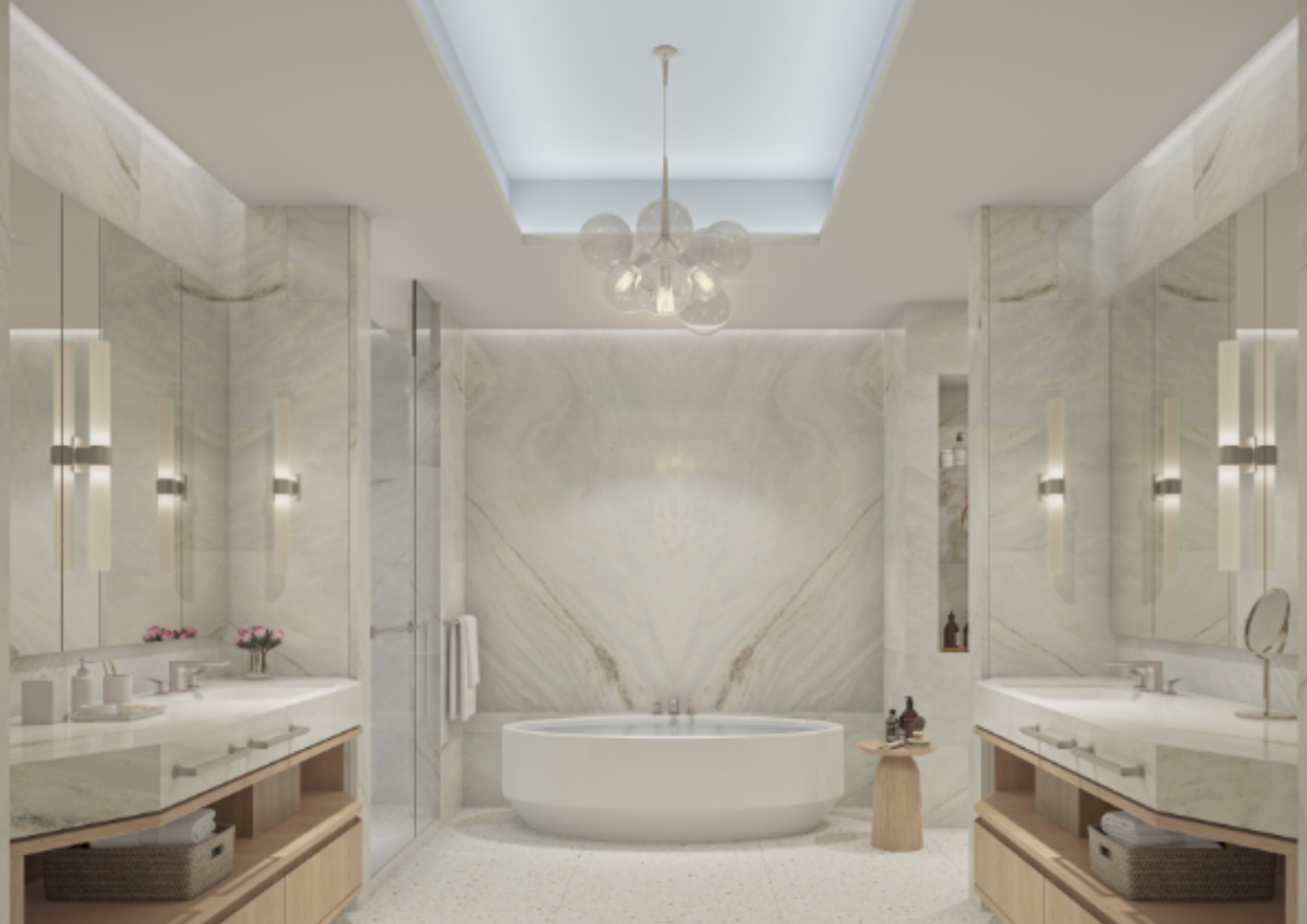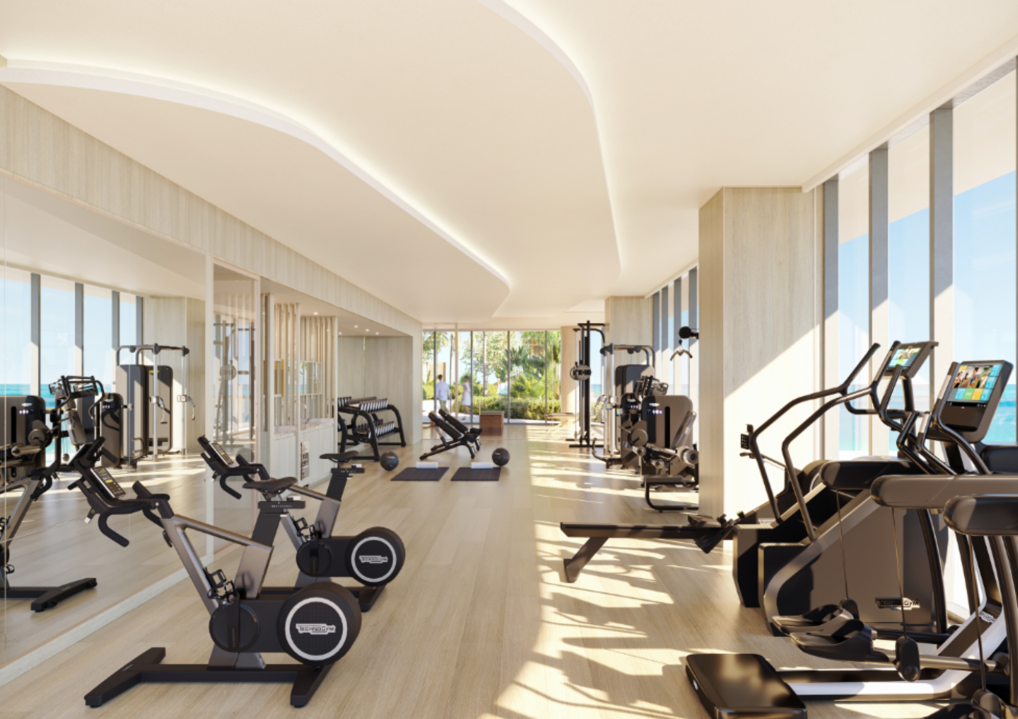 Every aspect of life here is designed for ease. For example, the wellness center includes a bayfront spa, yoga and treatment rooms, and a modern gym. A rooftop pool with private cabanas invites you to unwind above the ocean.